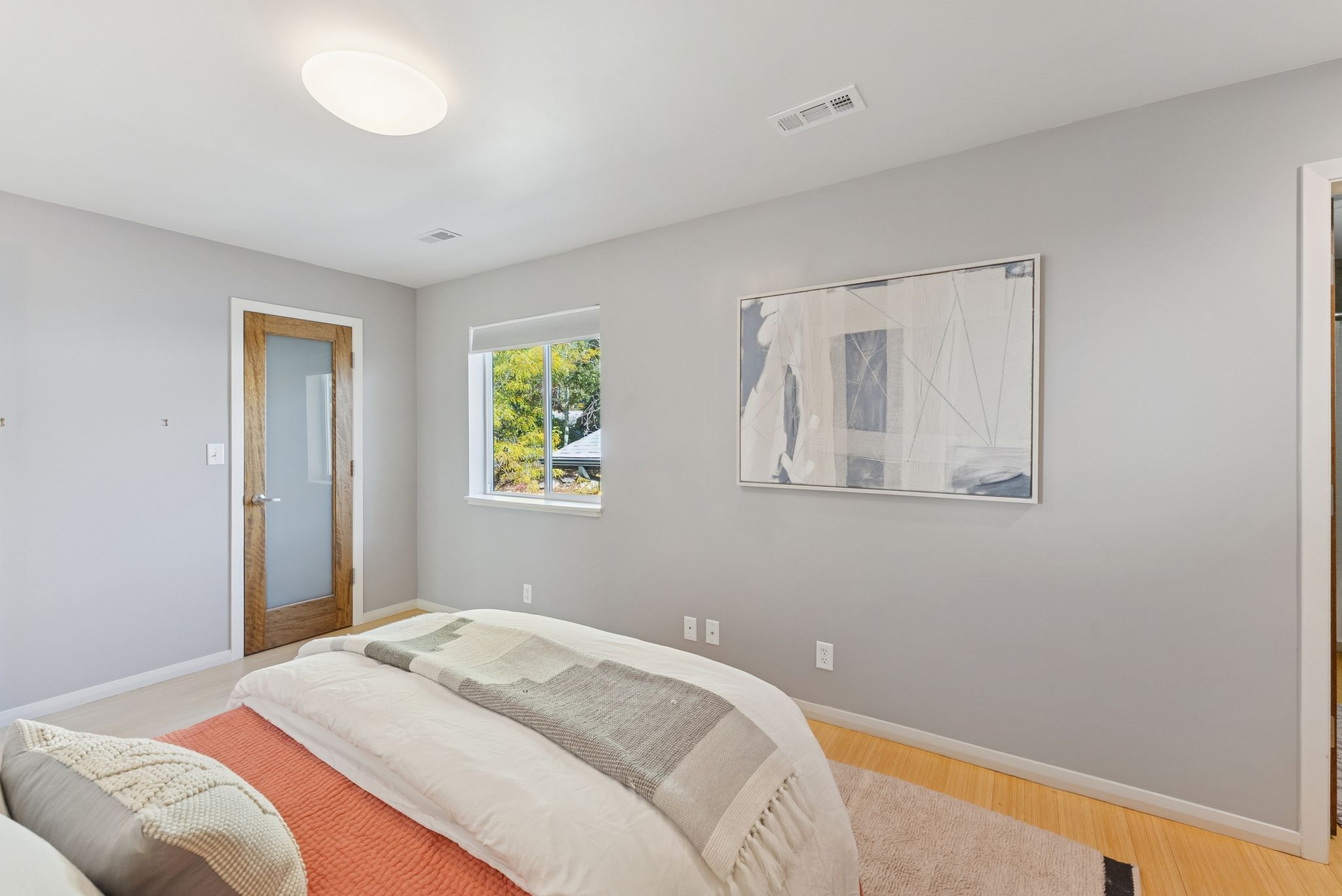 The upper-level primary suite provides a serene and spacious retreat. Its en-suite bathroom is splashed with natural light, leading to a generous walk-in changing closet. A second bedroom includes a private bath and two walk-in closets. The flexible, walk-out lower level offers endless possibilities as a media room, office, or additional sleeping space and includes a wet bar, refrigerator, and a full bathroom.